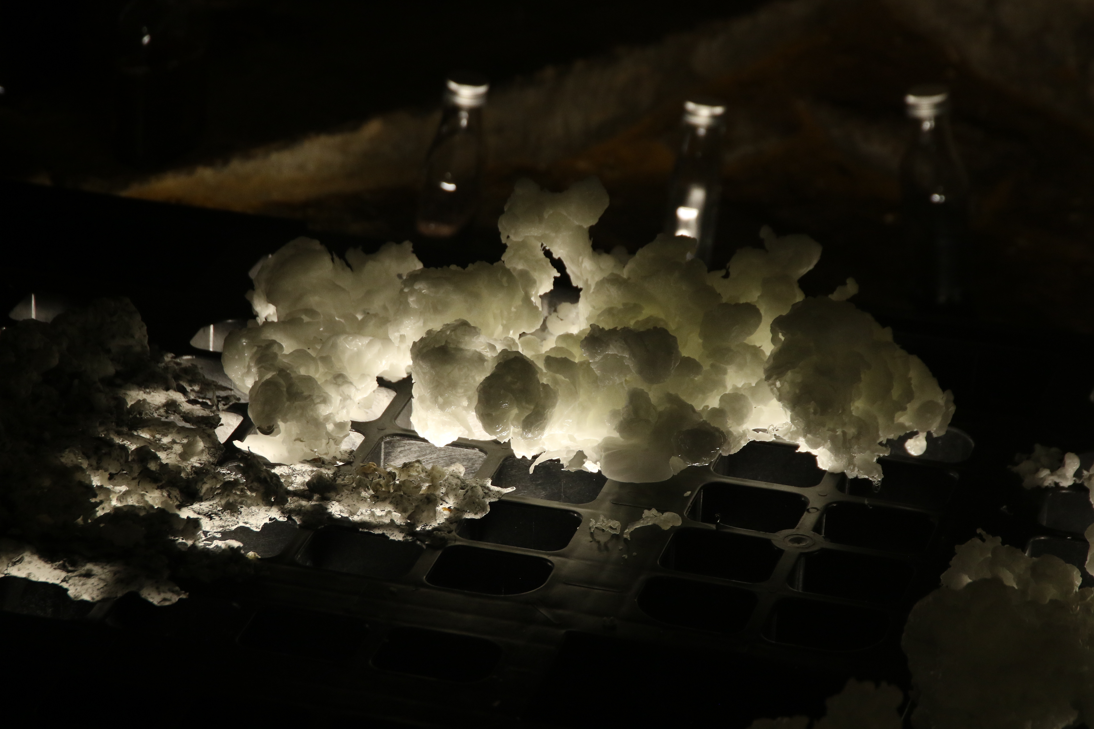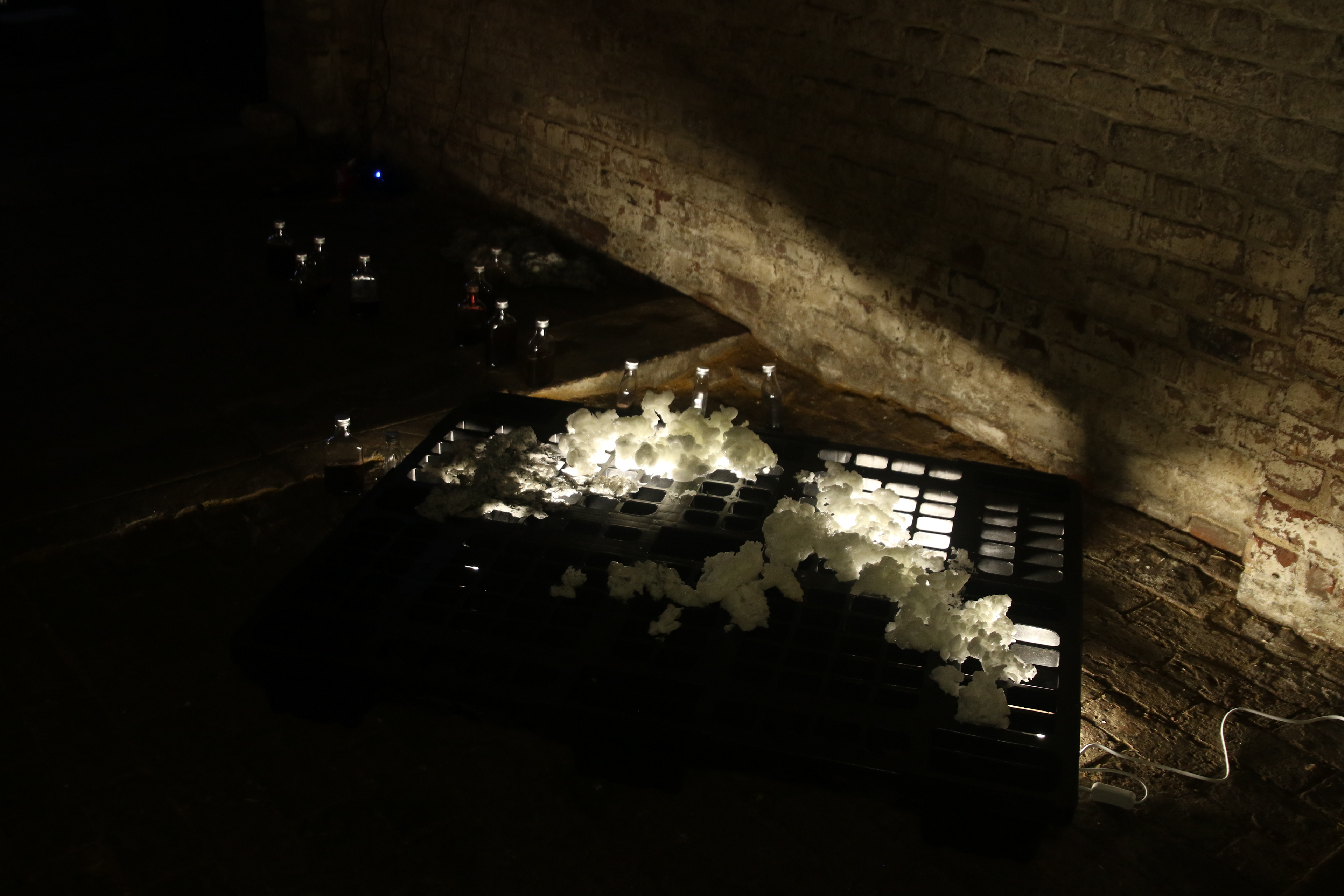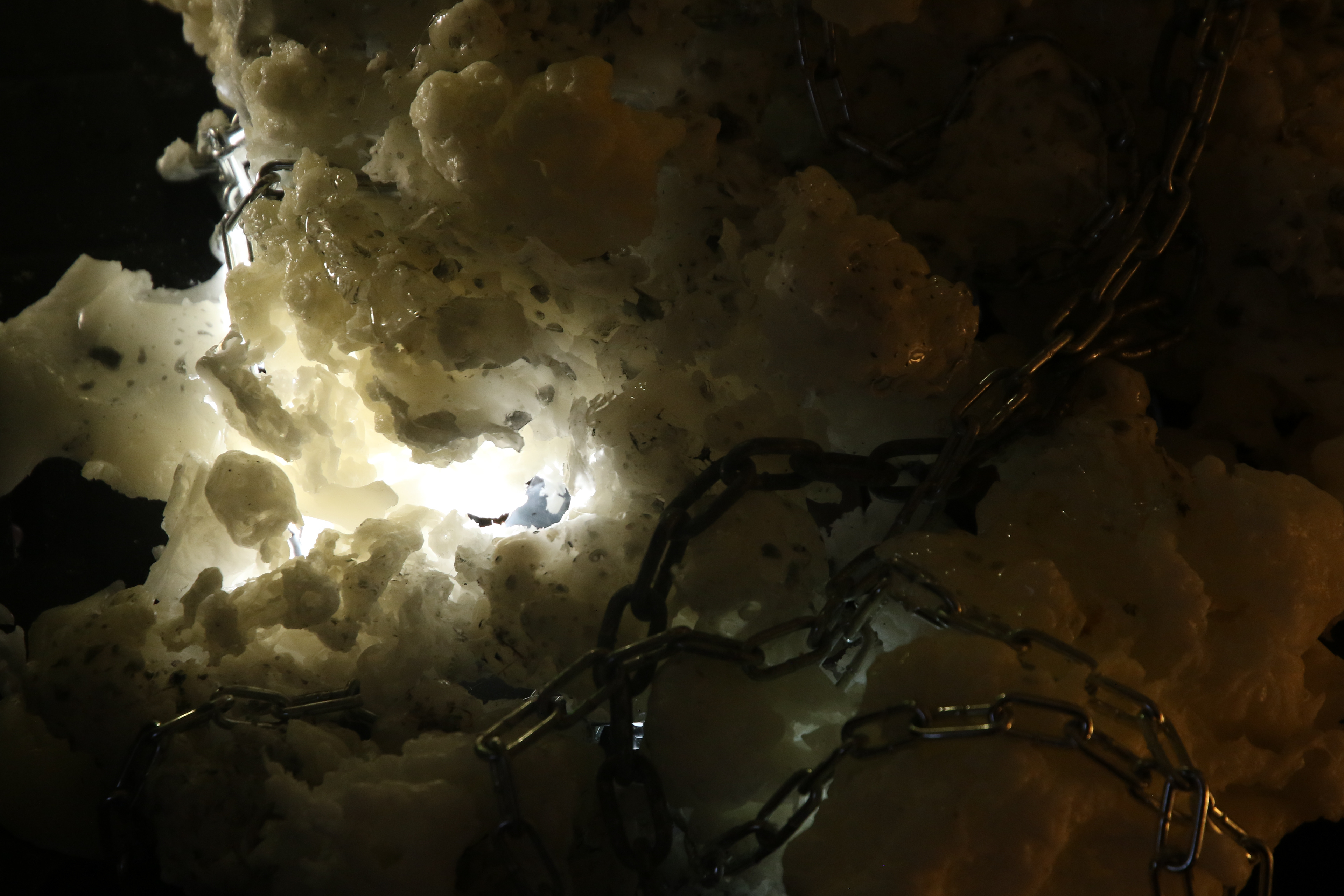 Items inside an international parcel with the consignment number 5108765298844 - microcrystalline wax, glass wax, dyed dark coloured seawater, steel chains, recycled polypropylene nestable pallets (used in transporting the IBC water container filled with seawater in other part of the installation '-321 °F | in sarcophago vivum aeri')